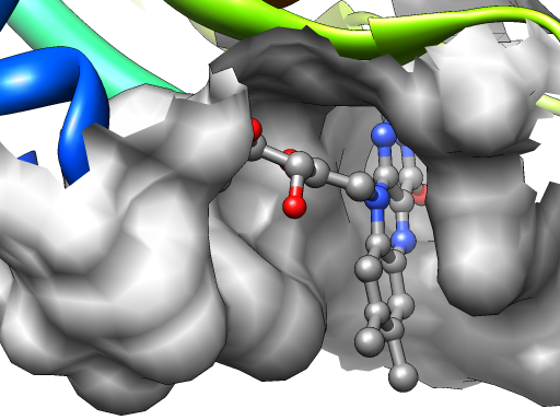 computer generated image While you are probably aware how to modify the representation of a molecule with the Select and Action menus, you are probably less aware of the Depiction tools and their capabilities. In particular, the Per-Model Clipping and Surface Capping tools are very useful for cutting away parts of surfaces. Pipes and Planks and Nucleotides provide alternate representations of secondary structure and nucleotides, respectively. You can alter the ribbon cross section with the Ribbon Style Editor. And you can alter sizes and colors based on various attributes with the Render by Attribute tool.