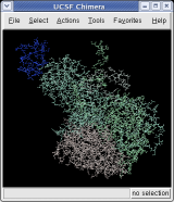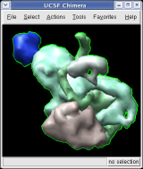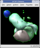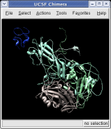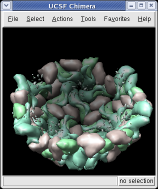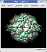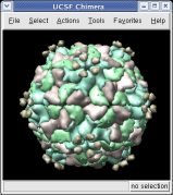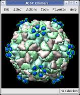 The surfaces representing each protein can be adjusted to show more detail. We will look at a single copy of the asymmetric unit, 1/60th of the icosahedral capsid.