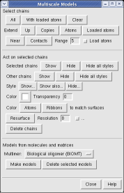 Selected proteins can be shown using atom level or residue level representations instead of surfaces.