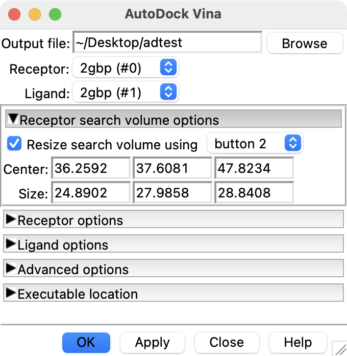 However, if you are using the Autodock Vina dialog, the files will be saved automatically according to the location that you specified as "Output file" in the dialog.  For example if I use the dialog as shown in the attached image, I would automatically get files in directory ~/Desktop/ named