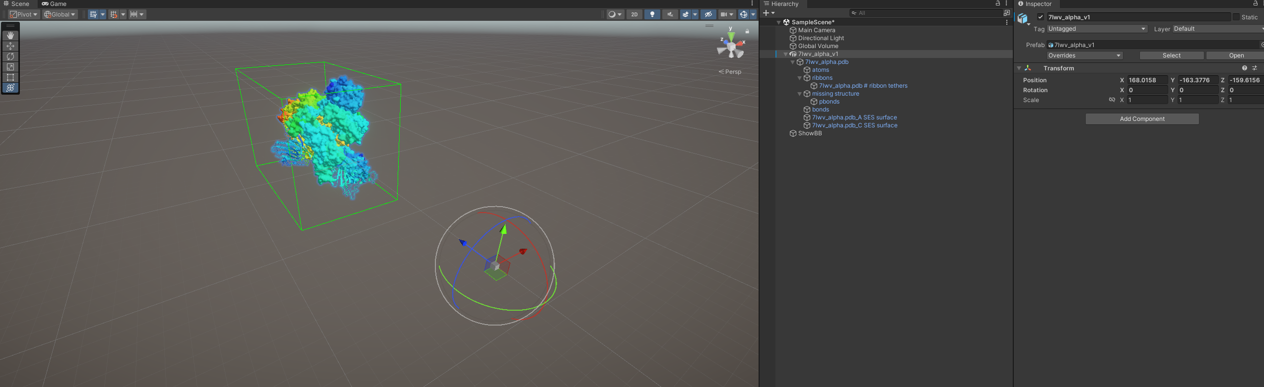 I tried adding a ChimeraX .glb file to a Unity (2023.1.16f1) scene and it