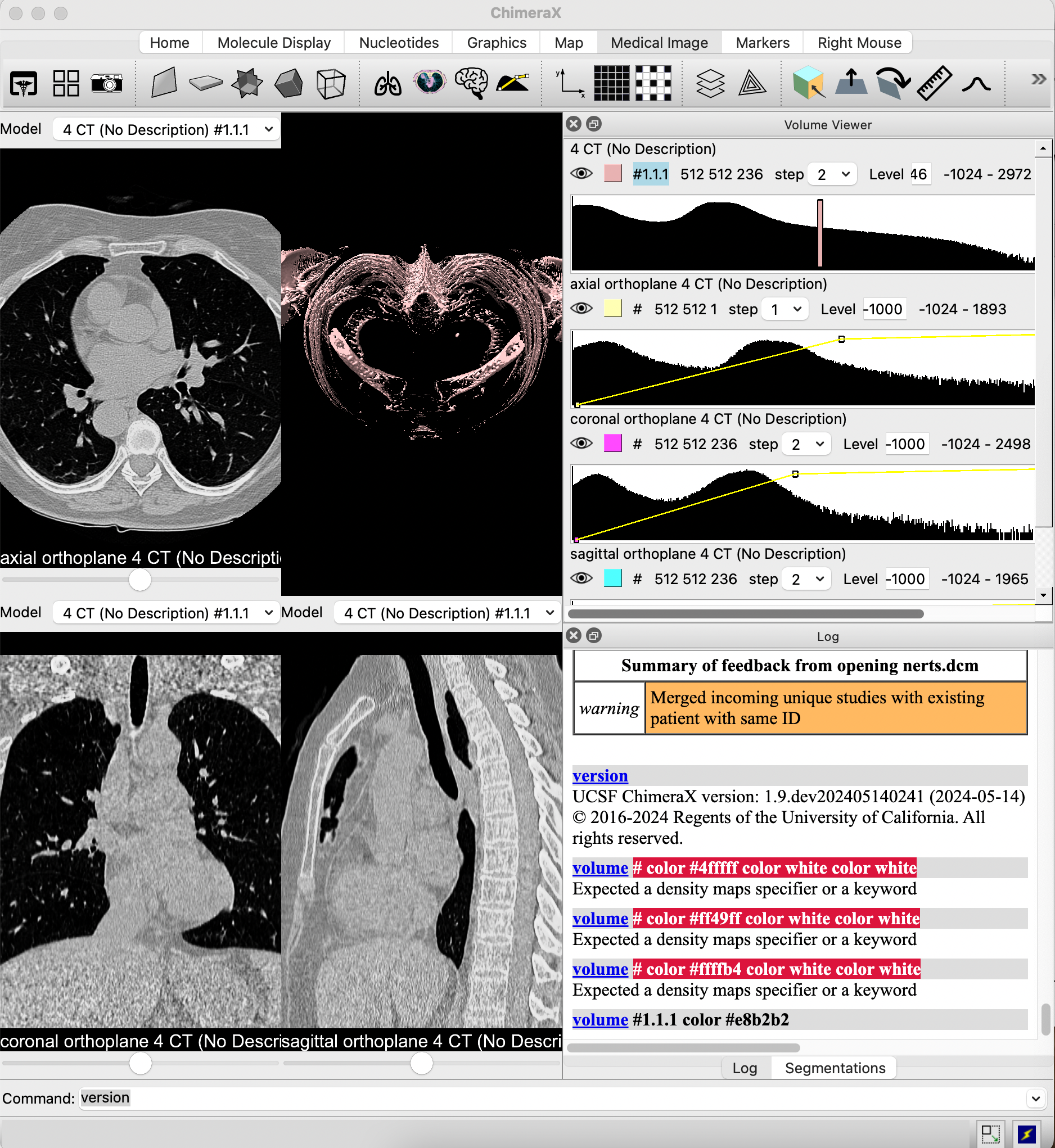 Tested in UCSF ChimeraX version: 1.9.dev202405140241 (2024-05-14): I used the Volume Viewer color wells to change colors but what is actually shown in the fourup view stayed the same. See screenshot attached. Only 3D surface view tracks the colorwell color.