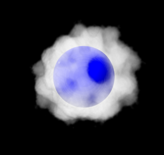 Example image of opaque object occluding volume image rendering.
