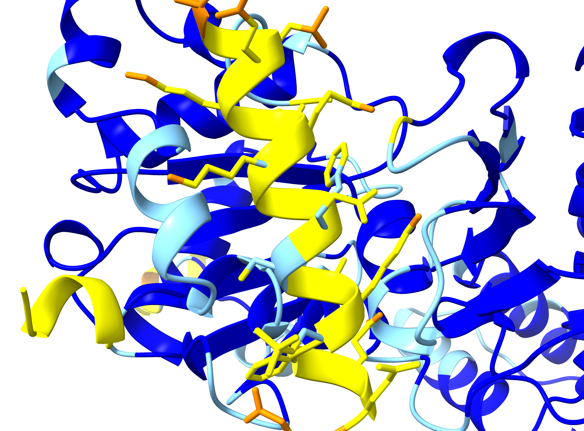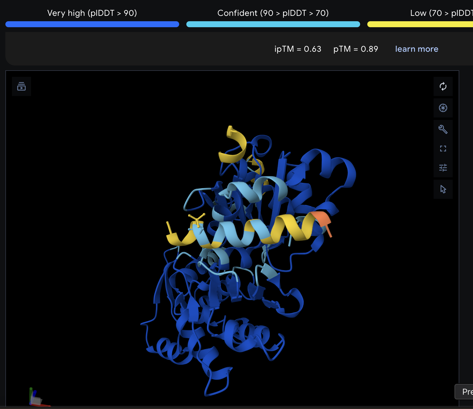 Hi, I am experiencing a wired error: For some reason the pLDDT score displayed on the AF3 server is not the same as if I downloaded the structure and displaced it in ChimeraX, by the command: color bfactor palette 0,darkorange:49.99,darkorange:50,yellow:69.99,yellow:70,lightskyblue:89.99,lightskyblue:90,blue:100,blue Same goes for "color bfactor palette alphafold" For some reason the backbone does not have the same score, however some atoms of the side chains have the “correct” score. I don’t understand how that can be, shouldn’t the pLDDT score cover the backbone? I wrote the AF3 DeepMind team and I was told the issue would be on the ChimeraX side, which I have a hard time to believe… I only experienced this issue with AF3 predictions, where a residue was modified by PTM… Would you have any idea to fix this issue? Thanks a lot. Best regards, Lukas