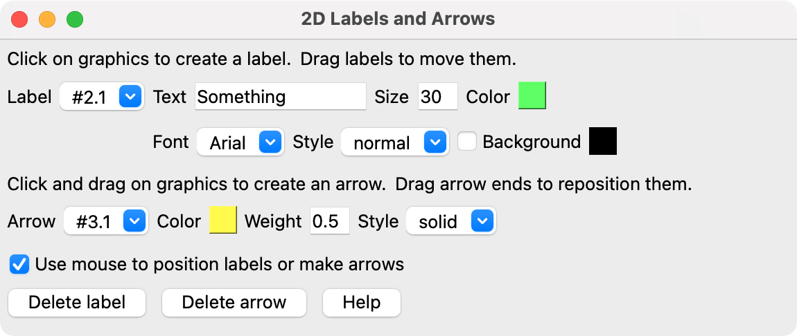 Use mouse to create/move labels and arrows