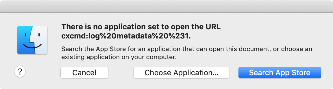 click some execution link in the ATP synthase tutorial, it does not work, raises error that there is no app to open the URL (the one with the cxcmd) and to check the App Store for a suitable app. Image of this error dialog attached.