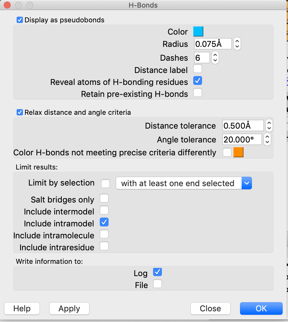 > hbonds sel restrict both interModel false distSlop 1.0 intraMol false