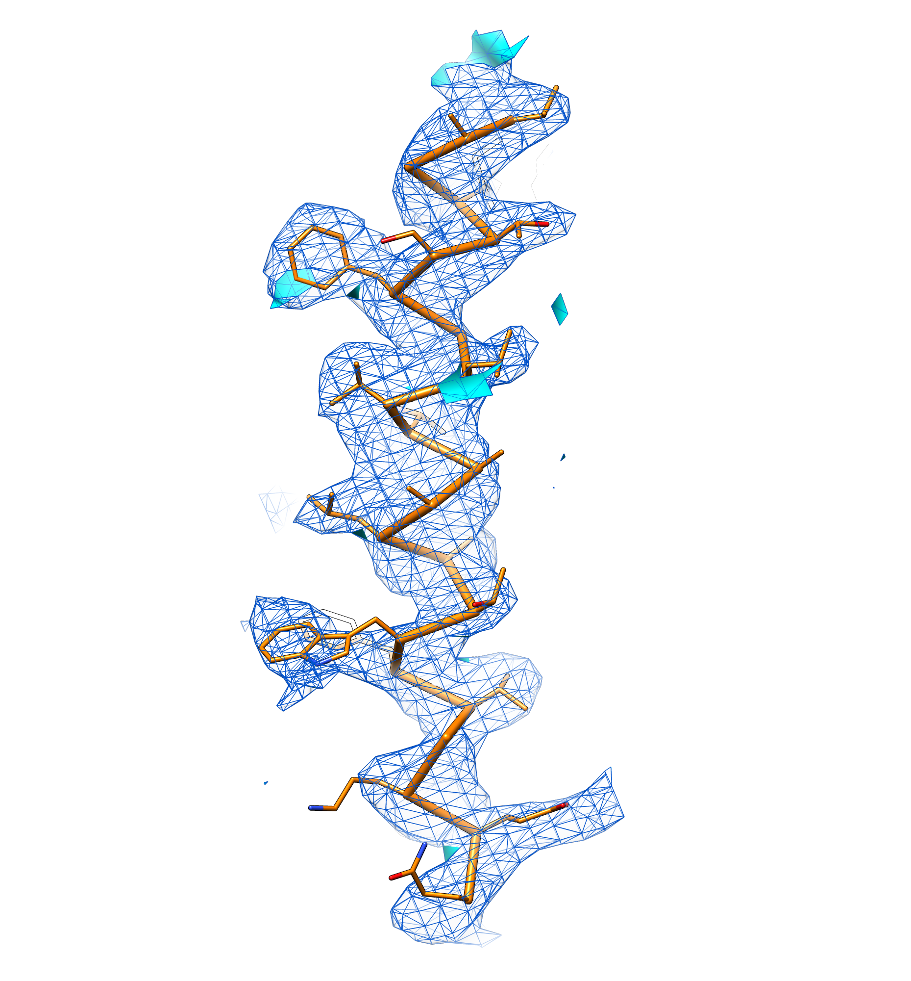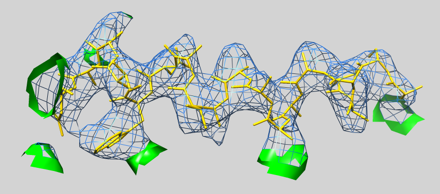 When I want to show electron density around, for example, a single alpha helix in a structure, there are a couple of options in chimera - one would be to use vop zone, which I don't like for this purpose, because it creates a new map that can be recontoured (so one can't see where the original map has been cut). The sop analog of this, sop zone, works quite well for the purpose, but there is no easy way that I can find to cap the holes that are created in the mesh - I want to do this so that I can make it obvious where "carving" the map has affected the shape of the resultant map, or has truncated connected regions that are not displayed.