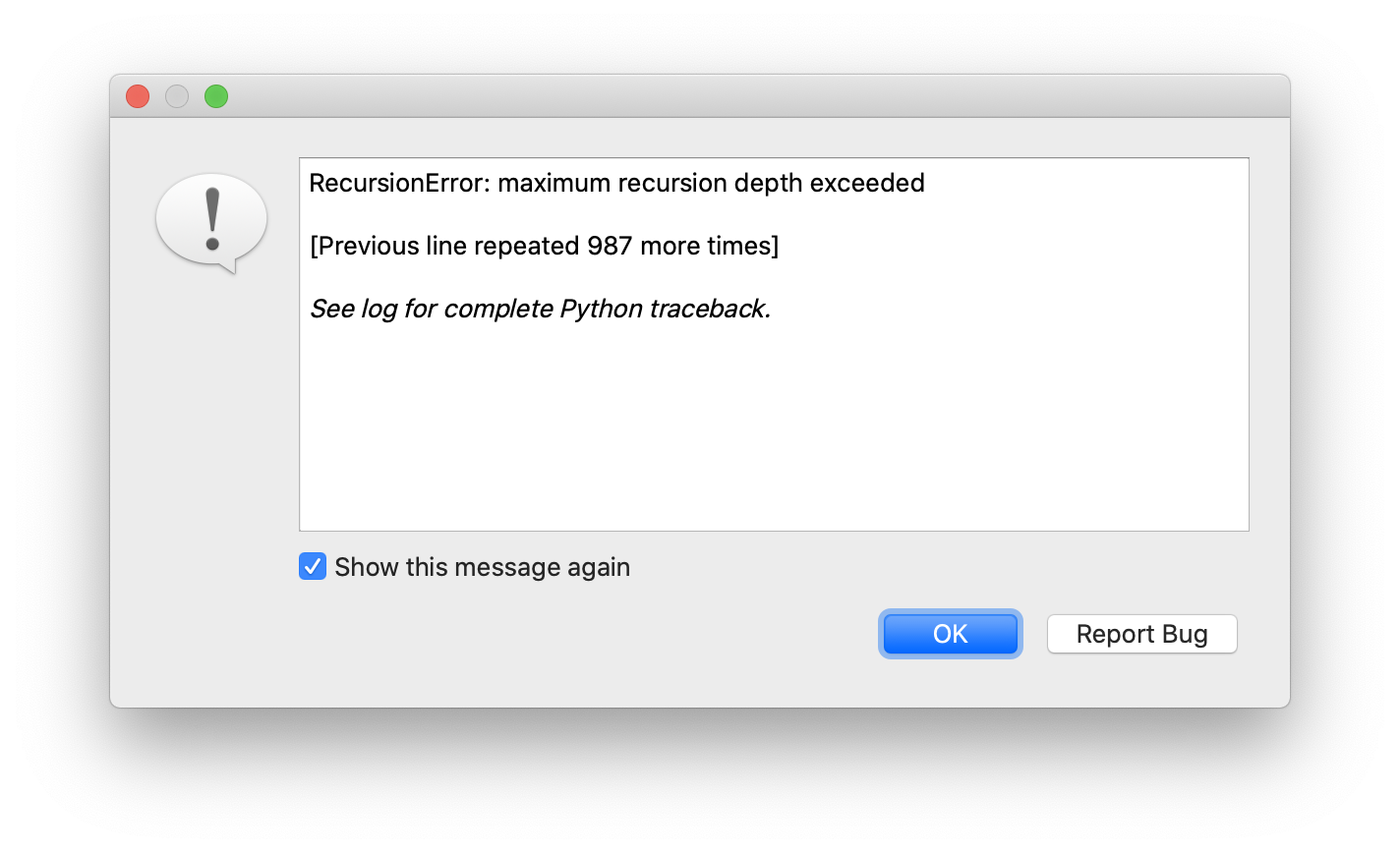 Can you hit report a bug when you get that Segger max recursion depth error message? I need to see where it is in the code. I do not get the error, tried two different data sets. If you could send a session file with map included in the session file that would also help figure the problem out.