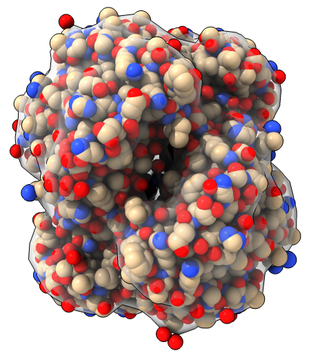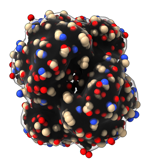 Tested in three situations: with an isosurface inside of transparent sphere atoms, an isosurface inside of another isosurface (separate volume models), and atom sticks inside a transparent isosurface.