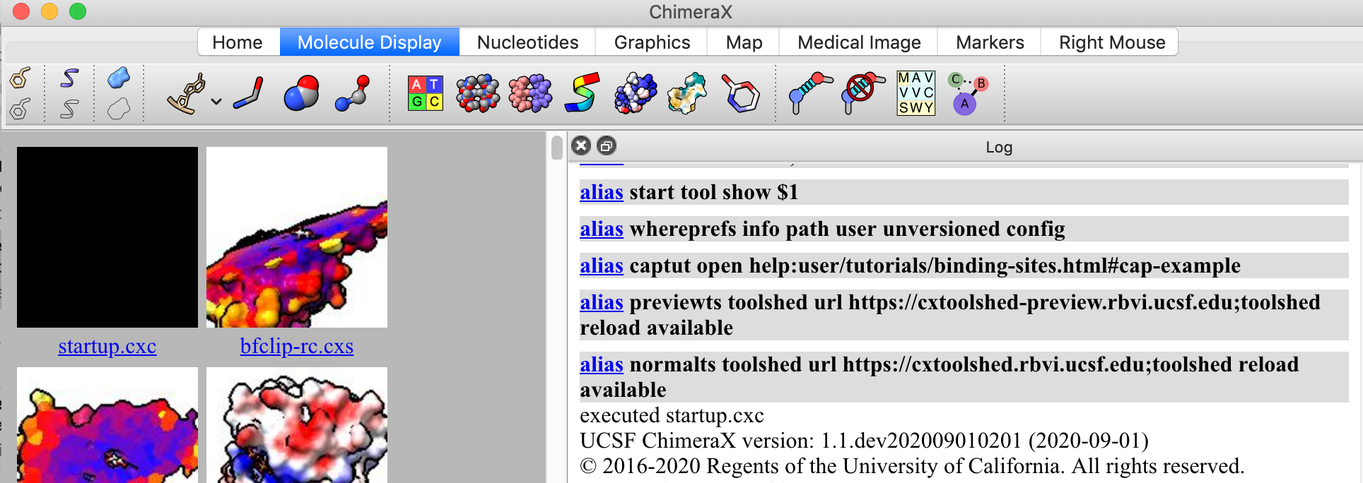Molecule Display toolbar icons in different orders, sometimes nucleotides before others