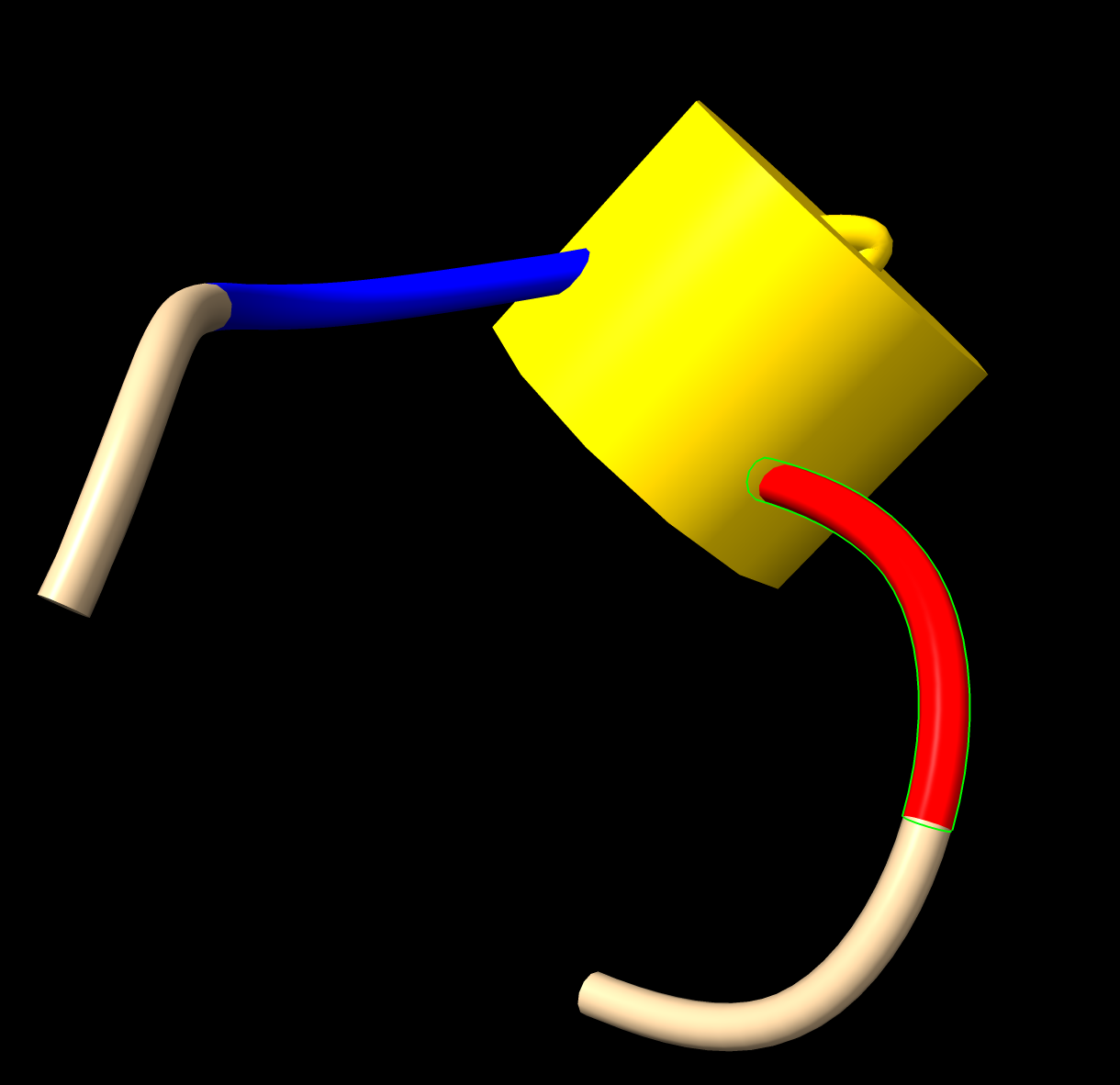 Thanks for showing what PyMol does with cylinder helices. From your image it appears the PyMol does not connect to the center of the cylinder end ever. Instead I bet it connects to the terminal CA at the end of the helix. So it always shows the coil entering the side of the cylinder. When I was working on ribbons I was surprised that our coils try to connect to the center of the end cap, and thought connecting to the terminal CA was more geometrically correct. But I did not want to change it since I was only working on optimization. Maybe the aesthetics of connecting to the center of the end cap are better? What do you think?