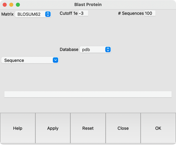 When you make a better BLAST gui it would be nice if it could work directly with a sequence for cases where the user does not have an existing structure. Maybe the Chain menu could instead be called the "Sequence" menu and it could list "chain A", "chain B" but also have entries for any open sequence panels like "MELB_ECOLI:1". Those sequence panel ids can be used with the blastprotein command, so it is just an ability to choose a sequence in the BLAST gui that is missing.