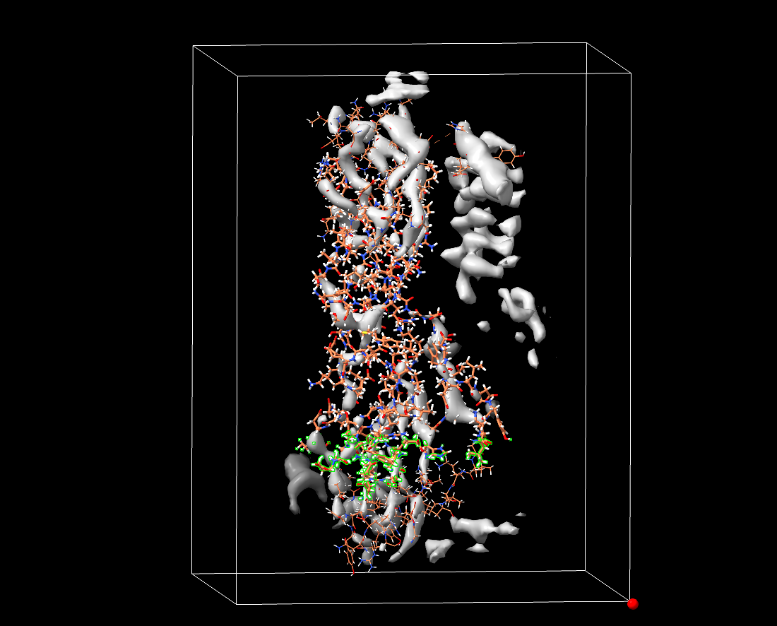 The update to 7.1.0 didn't fix anything. It's quite clearly a race condition within the OpenMM core. See attached: the box shows the extent of the volume used to generate the Continuous3DForce, with the red sphere at maximum (i,j,k). The thicker atoms are the mobile ones, with the thicker ones fixed (so excluded from map forces). The selected atoms are all experiencing forces of +/- 2.14748 kJ/mol/nm on each axis (i.e. they've been fed uninitialised values). I've posted as such to the OpenMM Github - looks like it will be up to them to fix it. On 2017-04-21 23:59, ChimeraX wrote: