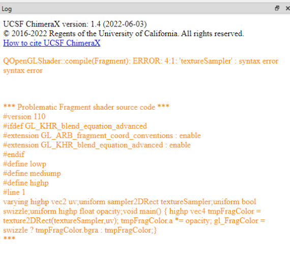 I upgraded to ChimeraX 1.4 but the problem is still there. The log window now displays a message which is found in the attached image.