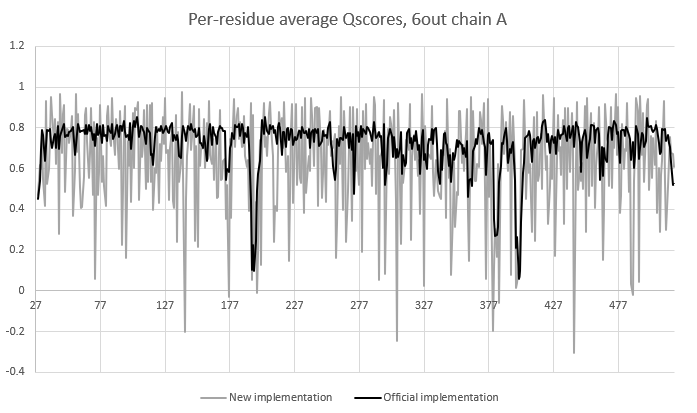I've been working on porting the Q-score algorithm (https://github.com/gregdp/mapq) to ChimeraX (since it's a little embarrassing that despite being a tool for fitting models into maps, ISOLDE doesn't actually have any tool to indicate local map fit). According to some of the recent cryo-EM taskforce outcomes it seems the Q score is still considered one of the better measures. Anyway, I have an implementation that *appears* to be working (i.e. gives sensible-looking results) and I hope runs somewhat faster than the original... but since I'm not actually licensed to use Chimera I can't directly compare the two. Wondering if (a) someone on the team is willing to help run a few tests, and (b) if you'd prefer this to be a more general ChimeraX plugin rather than wrapped into ISOLDE?