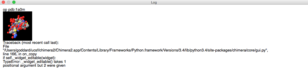 Using key command-c to copy selected text from the Log panel gives the following traceback. Hmm... I can't copy it. So I'll attach an image of the traceback.