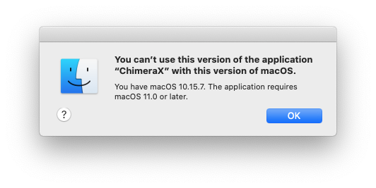 macOS 11.0 came out in Fall of 2020, so less than 3 years ago, and we are considering requiring that all Mac ChimeraX users have an OS version less 3 years old.