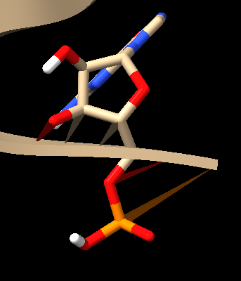 Yes, RNA … I think it was 2tpk residue 1. I was just surprised that there were so many tethers per residue for nucleotides compared to amino acids and it took me a while to figure out which atoms were designated for this. Apparently the rule is all the atoms of the minimal backbone, thus excluding only O of amino atoms and the two phosphate O not bonded to C. My initial thought was maybe a smaller set should be chosen for nucleotides, but since it’s possible to make tethers 100 transparent, I don’t care that much. Either of the following is OK with me: (1) remove O3’ and O5’ from the set of atoms per nucleotide for which tethers are shown, or (2) change this ticket to wontfix.