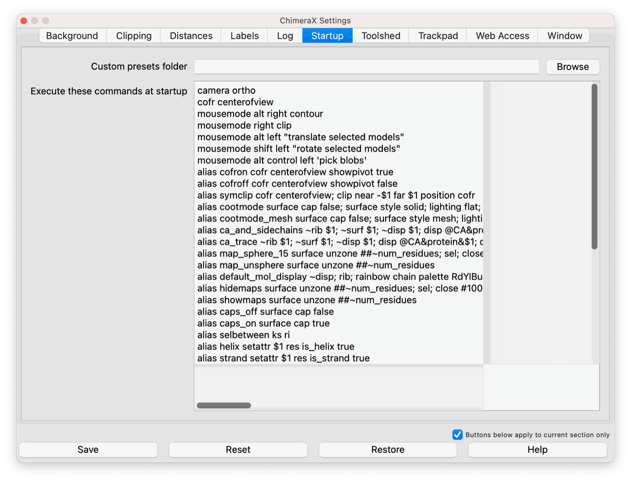 > alias symclip cofr centerofview; clip near -$1 far $1 position cofr